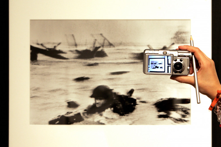 La légende veut que presque tous les clichés aient été détruits dans l’empressement, au laboratoire photo, en Angleterre. Il n’en resta que 11. 11 photos qui ont néanmoins fasciné le monde entier. Elles sont floues, mais on y sent le chaos, la peur, et le courage de ces hommes. La force de ces images dépasse d’ailleurs ces 11 clichés et Capa a intitulé son livre de mémoires de guerre, "Juste un peu flou".