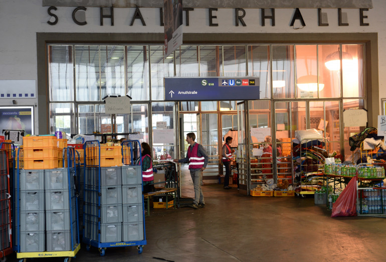 Des bénévoles attendent des réfugiés avec des denrées alimentaires à la gare de Munich. (illustration)