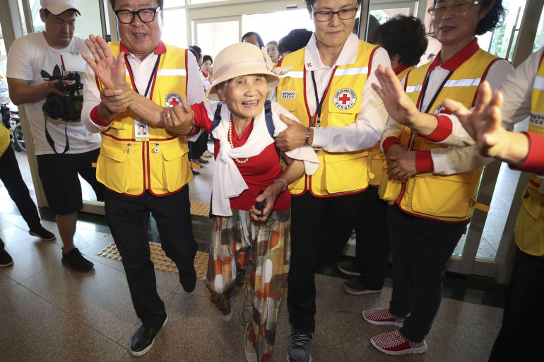 Leurs familles étaient séparées depuis des décennies. Plusieurs dizaines de seniors sud-coréens ont pu passer en Corée du Nord lundi 20 août pour participer à des retrouvailles entre familles du Nord et du Sud, et rencontrer des proches qu'ils n'avaient pas revus depuis la Guerre de Corée (1950-1953).