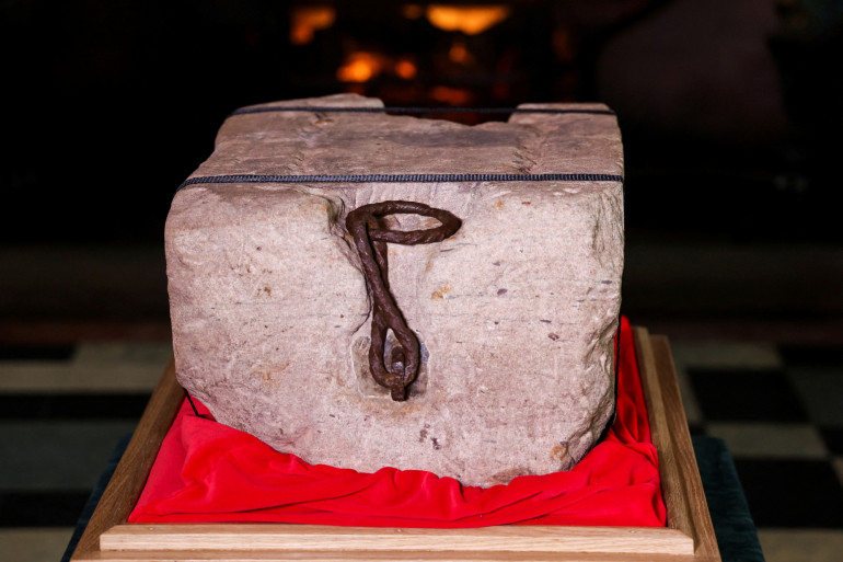 La pierre de 152 kilos ira se loger dans son emplacement sous la chaise du roi Edouard, un trône de chêne de plus de deux mètres de haut, au centre des couronnements depuis plus de 700 ans. Selon la légende, la pierre a été transportée de la Terre sainte à travers l'Egypte, la Sicile, l'Espagne et l'Irlande avant d'être disposée dans un monastère à Scone, en Écosse, au IXe siècle, puis d'être utilisée pendant des siècles pour les couronnements des rois écossais.