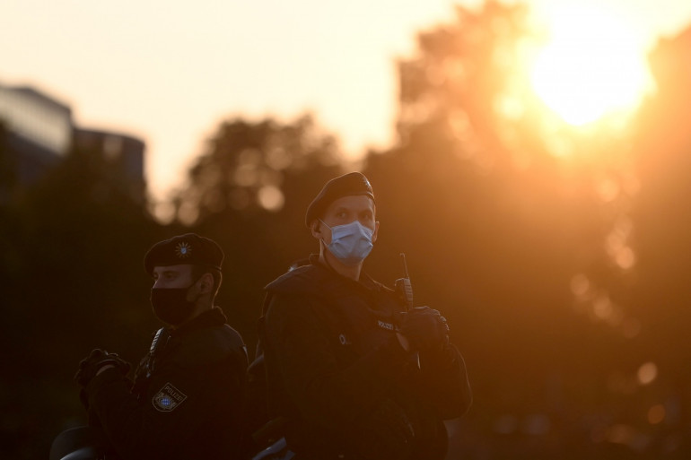 Des policiers allemands portant un masque pour se protéger du coronavirus. (Illustration)