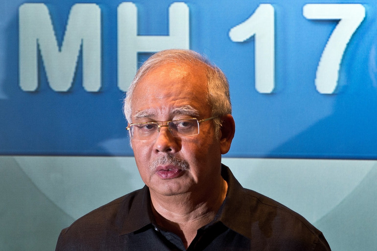 Le Premier ministre de Malaisie, Najib Razak, le 18 juillet 2014 lors d'une conférence de presse sur le crash du vol MH17 de Malaysia Airlines.