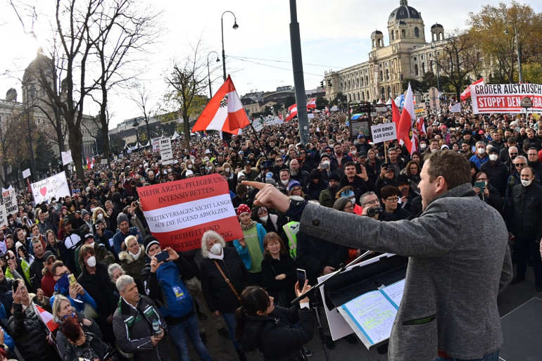 En Autriche, les manifestants ont défilé dans les rues de Vienne pour protester contre les nouvelles restrictions sanitaires samedi 20 novembre