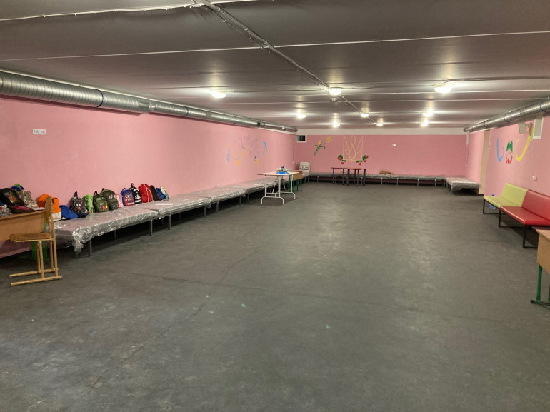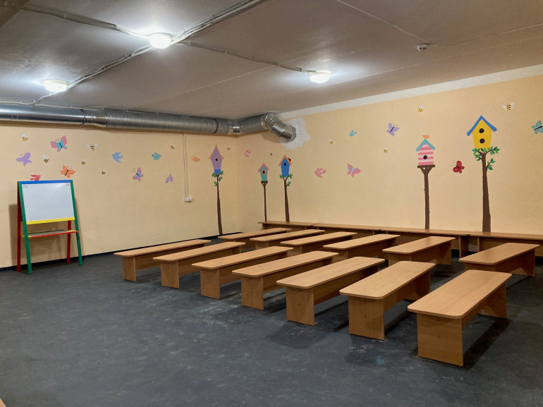 Si cette école a pu rouvrir c’est parce qu’il y a un abri antiaérien. Un immense sous-sol a été rénové et aménagé avec l’aide