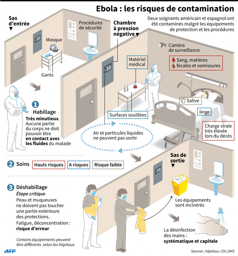 Les risques de transmission dans une chambre d'isolement pour malade d'Ebola.