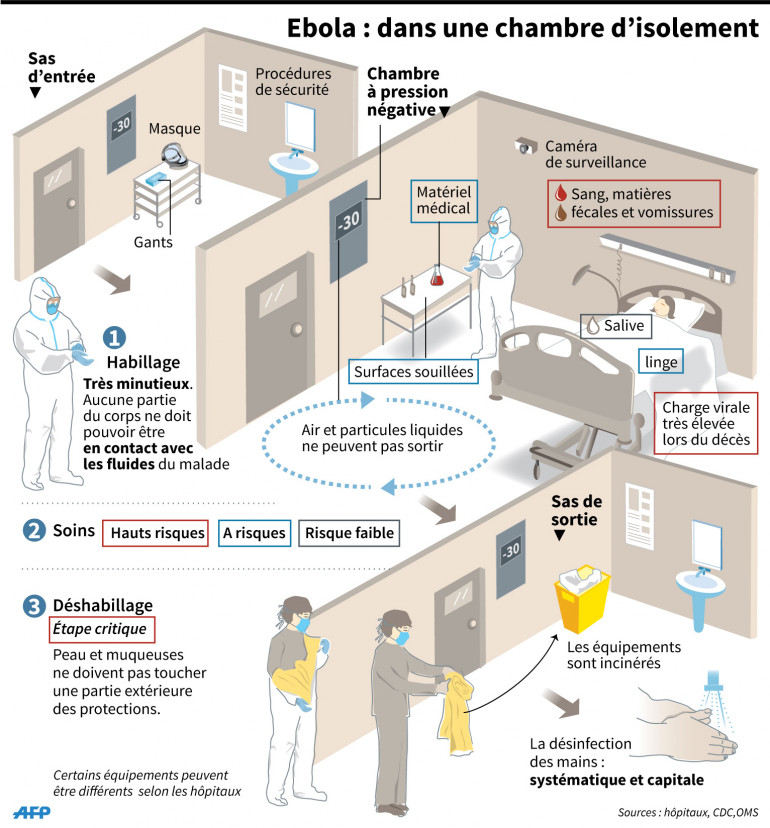 Prise en charge dans une chambre d'isolement pour malade d'Ebola.