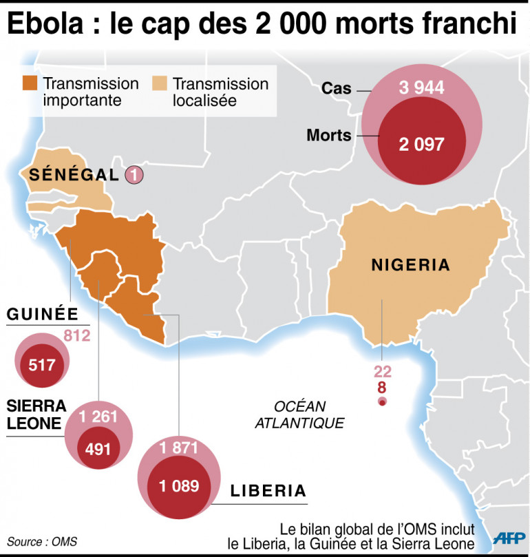 L'OMS a décidé d'utiliser immédiatement les traitements expérimentaux à base de sang et les sérums de convalescence contre l'épidémie d'Ebola. Cette accélération de la mobilisation est d'autant plus urgente que l'épidémie a franchi un nouveau cap: Ebola a fait 2.097 morts dans les trois principaux pays africains touchés, sur 3.944 cas, selon un bilan de l'OMS arrêté au 5 septembre. Il y a eu 1.089 morts au Liberia, 517 en Guinée et 491 en Sierra Leone. Le Nigeria, qui ne figure pas dans ces statistiques, a déclaré 22 cas, dont 8 décès.