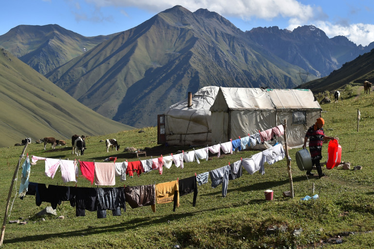 La vallée de Suusamyr, située à une altitude de 2200 mètres à proximité de l'ancien réseau de routes commerciales de la route de la soie