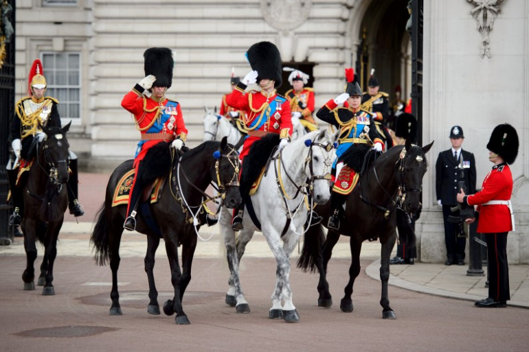 La princesse Anne, le prince Charles, héritier du trône et colonel des Gardes gallois et son fils, le prince William, deuxième dans l'ordre de succession, suivaient le carrosse royal à cheval et en grand uniforme.