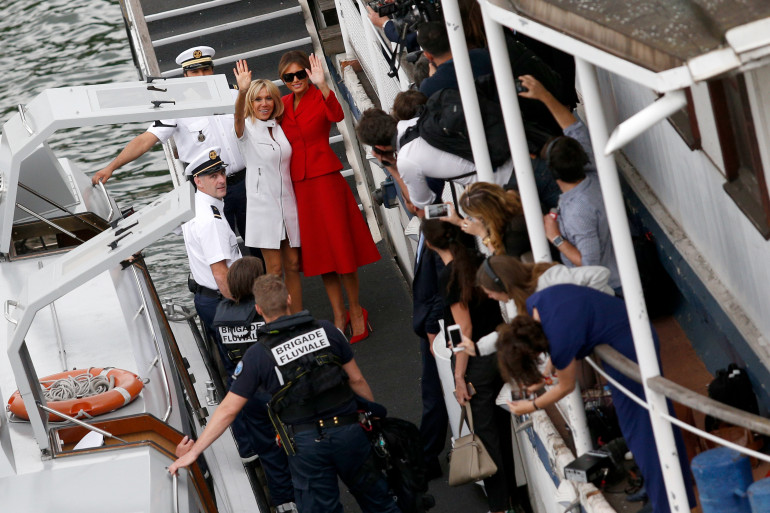 Brigitte Macron et Melania Trump lors d'une croisière sur la Seine, le 13 juillet 2017