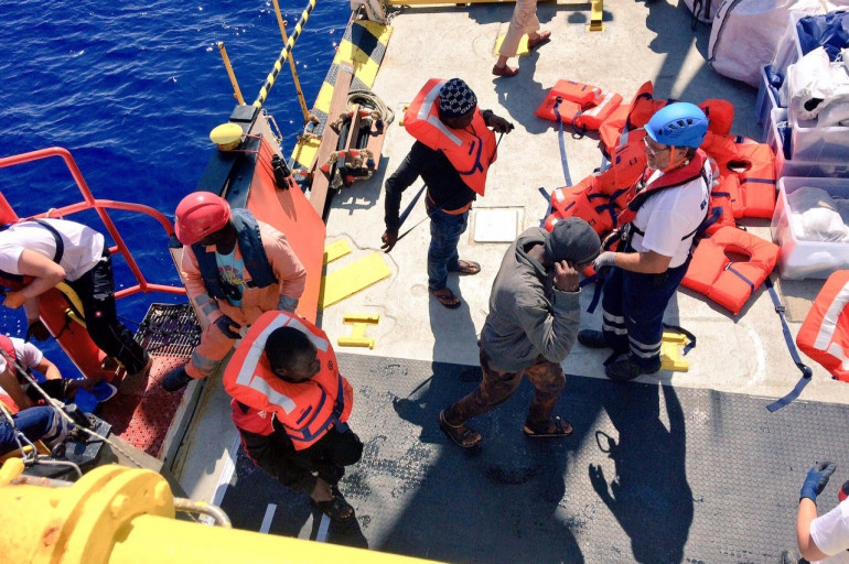 "Tout le monde avait peur, décrit Turi, un jeune orphelin ivoirien d’une quinzaine d’année. Surtout les filles, elle pleurait … (…) Ca fait très mal . Vraiment je remercie Dieu aujourd’hui. J’ai traversé la Méditerranée… La mer la plus dangereuse, et bien voilà, j’ai réussi ma mission." Sur le pont arrière du bateau, les chants des hommes secourus honorent leurs nouveaux héros. Pas le temps de s’attarder, un nouveau pneumatique en détresse vient d’être signalé.