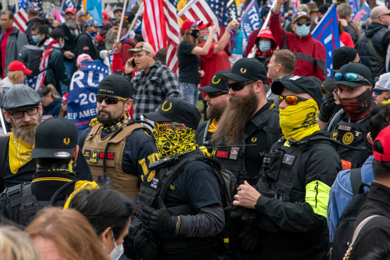 Le milicien est aussi accusé d'avoir été en possession de deux chargeurs d'arme à feu haute capacité lors de cette arrestation, qui témoigne de la tension qui règne chez les autorités à la veille du rassemblement. Et les "Proud Boys" sont loin d'être le seul groupe d'extrême-droite attendu, rappelle USA Today.