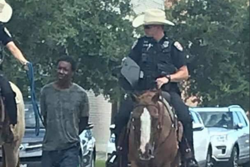 De nombreux internautes ont été choqués par une photo devenue virale où l'on voit deux agents à cheval escortant un homme noir tenu par une corde. Les internautes évoquent l'époque abhorrée des lynchages dans l'Amérique esclavagiste.