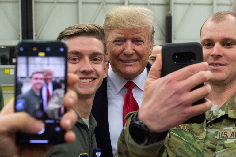 Donald Trump en visite à la base aérienne de Ramstein, en Allemagne, le 27 décembre 2018