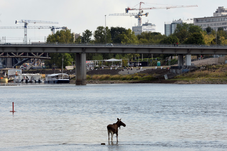 Un élan dans la rivière Vistula à Varsovie (Pologne)