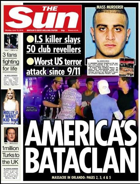 "Le Bataclan américain". C'est avec ses mots affichés en une que The Sun a qualifié le massacre homophobe d'Orlando, aux États-Unis, où 49 personnes ont été victimes d'Omar Seddique Mateen. Le terroriste présumé, qui avait prêté allégeance à Daesh, a été décrit par l'un des témoins comme maître de lui-même. Selon Angel Colon, un rescapé, "il passait devant chaque personne au sol et lui tirait dessus pour être sûr qu'elle était morte", comme le rapporte l'AFP. Les autorités américaines ont annoncé que sur les 49 victimes, 48 ont été identifiées. Ce tragique événement fait tristement écho à l'attentat perpétré le 13 novembre dernier au Bataclan à Paris.