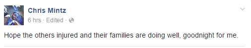Le tueur lui a tiré dessus à sept reprises et Chris Mintz a été touché au dos, à l'abdomen, à la main gauche et ses deux jambes ont été brisées, ont précisé ses proches. Conduit à l'hôpital le plus proche, le jeune homme est désormais hors de danger, mais va "devoir réapprendre à marcher" selon sa tante.