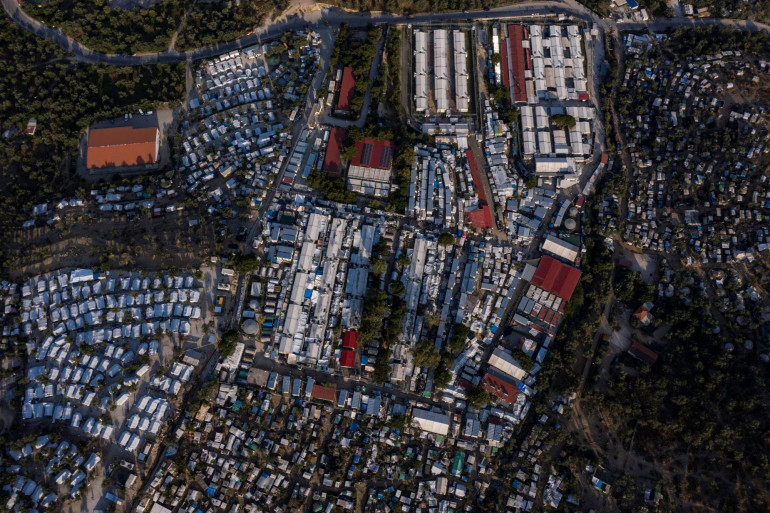 Photo aérienne du camp de Lesbos, prise le 21 juin.