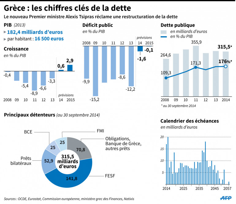 Principales données sur la dette grecque, PIB et croissance du pays.