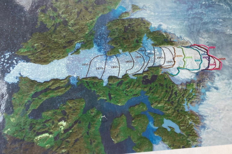 "On voit beaucoup de changements dans la ville. Le sol se dérobe sous nos pieds, les routes s’affaissent. Dans certains villages, les sols bougent car le permafrost fond trop vite à certains endroits. C’est dangereux. Certaines maisons ne sont plus habitables, elles vont devoir être détruites car le sol fond." Beaucoup d'habitants parlent de l'année 2003 comme d'un tournant. Cet été-là, le glacier a reculé de 25 kilomètres dans les terres. Du jamais-vu.