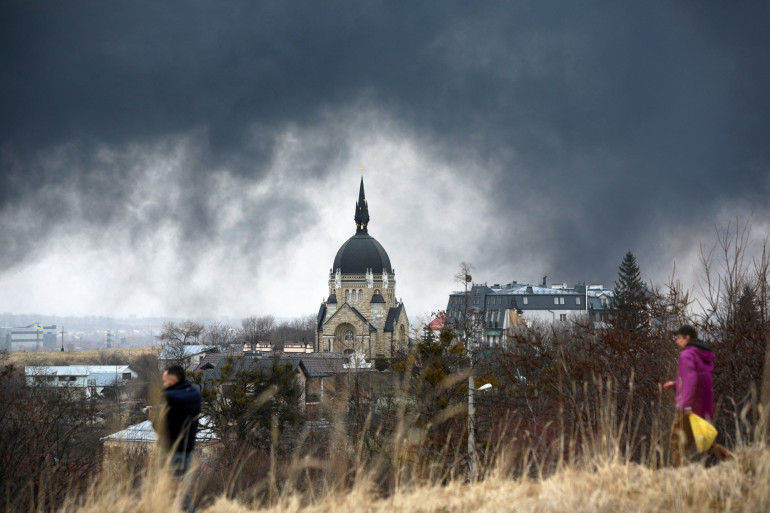 Des colonnes de fumée s'élèvent au-dessus de Lviv, bombardée le 26 mars