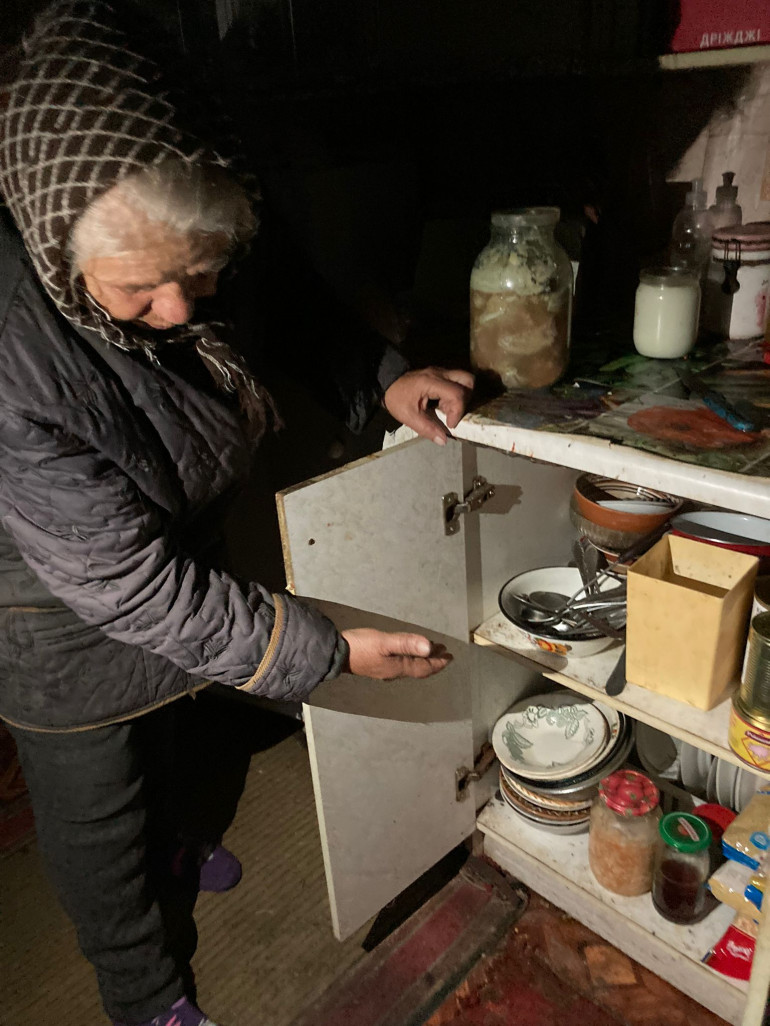 Cela fait un mois qu'elle vit sans eau courante ni électricité. Les maisons ont été détruites dans les combats pour reprendre Kherson. Sa cuisine sans fenêtre est plongée dans une profonde obscurité. Lydia lève les yeux vers un thermomètre. Il fait 12 degrés à l'intérieur.