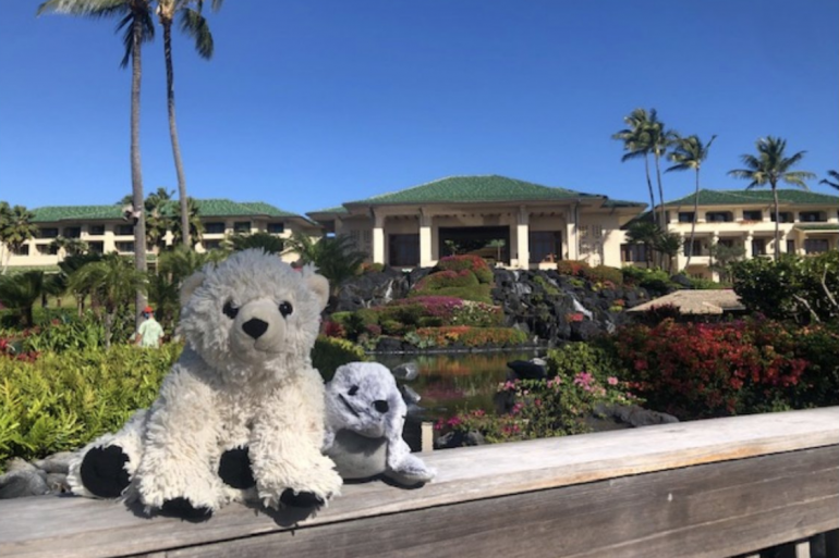 L'hôtel hawaïen explique que Sutro s'est fait un nouvel ami pendant son séjour, un petit phoque. Parmi les clichés publiés sur Twitter, on peut voir les deux peluches, profiter pleinement des services de l'établissement : transats, piscines et Spa.