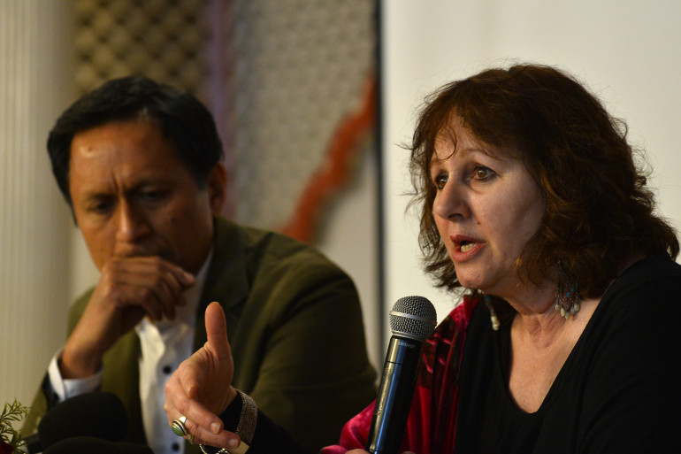 La réalisatrice britannique du documentaire "India's Daughter", Leslee Udwin, lors d'une conférence de presse à New Delhi le 3 mars 2015.