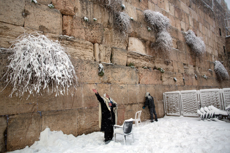 "Il y a de lourdes chutes de neige à Jérusalem, environ 25 centimètres jusqu'à présent, et il va continuer à neiger pendant toute la journée", a annoncé le Service météorologique israélien. En janvier des chutes de 10 à 15 cm de neige avaient été enregistrées.