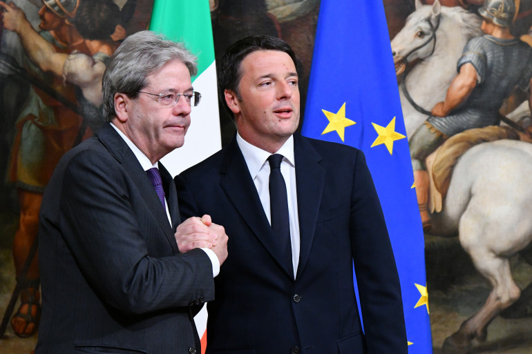 Paolo Gentiloni, premier ministre, et Matteo Renzi, candidat du Parti démocrate aux élections législatives italiennes du 4 mars 2018.