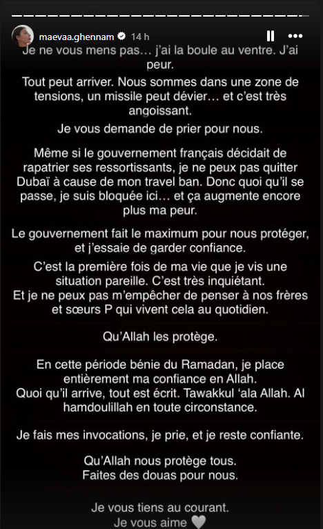 Le message de Maeva Ghennam après les frappes iraniennes sur Dubaï