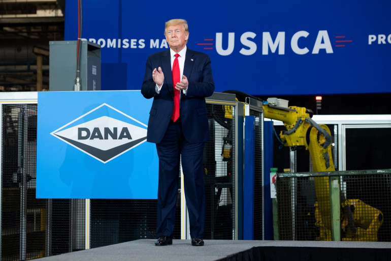 Donald Trump lors d'une conférence sur l'AEUMC, le 30 janvier 2020, à Warren (Michigan)