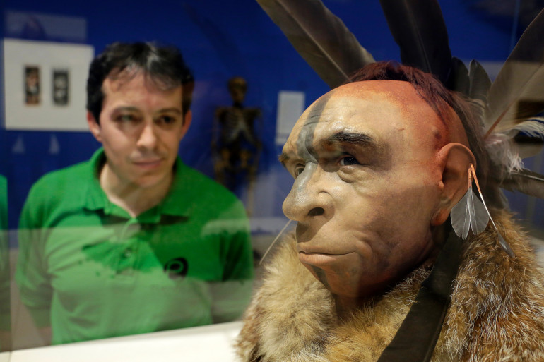 La représentation d'un homme de Neandertal au musée de l'évolution humaine de Burgos (Espagne)