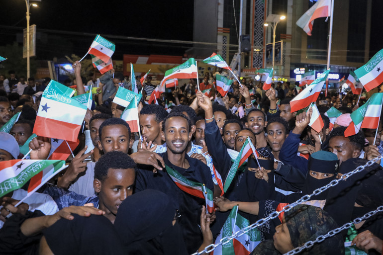 Des habitants du Somaliland célébrant la reconnaissance de l'indépendance de leur territoire par Israël, le 26 décembre 2025
