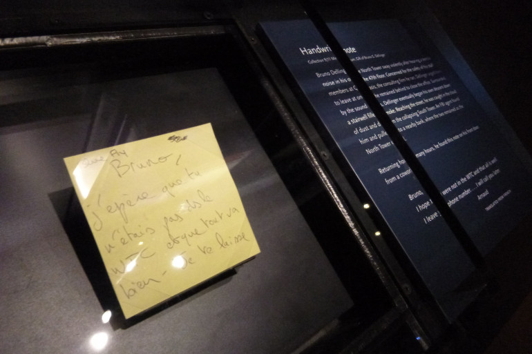 Mais il y a également des pointes d'espoir qui jalonnent les murs du mémorial, comme ce mot retrouvé sur la porte du survivant français laissé par un de ses amis où l'on peut lire : "Bruno, j'espère que tu n'étais pas dans le WTC (World Trace Center, ndlr) et que tout va bien. Je te laisse".