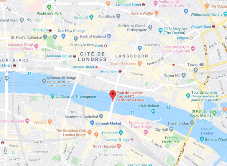 La police a demandé à tous les habitants d'éviter le secteur. Le London Bridge se situe au cœur de la capitale britannique, comme indiqué dans le plan ci-dessous.