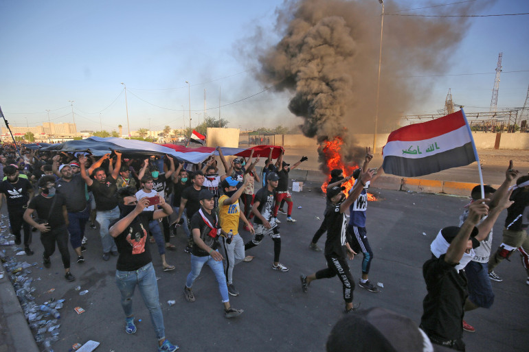 Depuis dimanche 6 octobre, les manifestants ne défilent plus dans le centre de la capitale de l'Irak vers l'emblématique place Tahrir. Les rassemblements sont désormais cantonnés à Sadr City et ses abords, dans l'est de la capitale de neuf millions d'habitants toujours privée d'internet, comme l'ensemble du sud du pays.