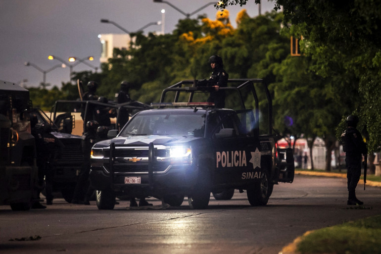 La police patrouille dans une rue de Culiacan, dans l'État de Sinaloa, au Mexique, le 17 octobre 2019.