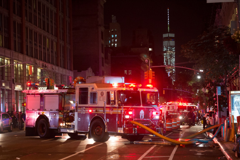 Les pompiers sécurisent le périmètre ou une explosion a eu lieu dans le centre de New York