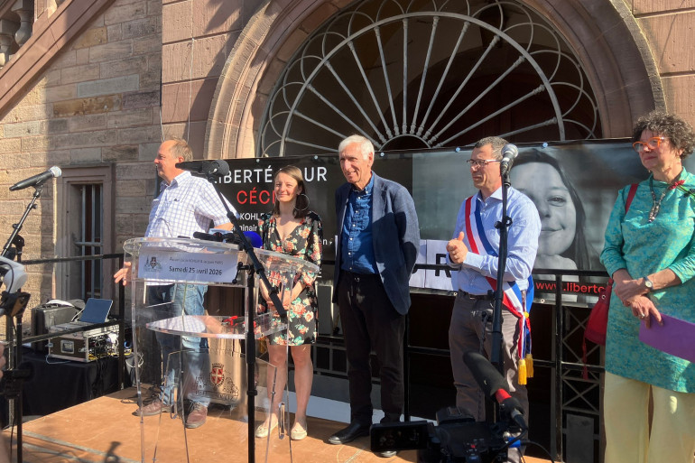 C'est un symbole fort. Cécile Kohler était de retour dans sa commune d'origine, Soultz, dans le Haut-Rhin, ce samedi 25 avril. L'ancienne otage en Iran est venue avec son compagnon Jacques Paris. Ensemble, ils ont décroché la banderole de soutien installée depuis trois ans sur la façade de la mairie devant des tonnerres d'applaudissements.