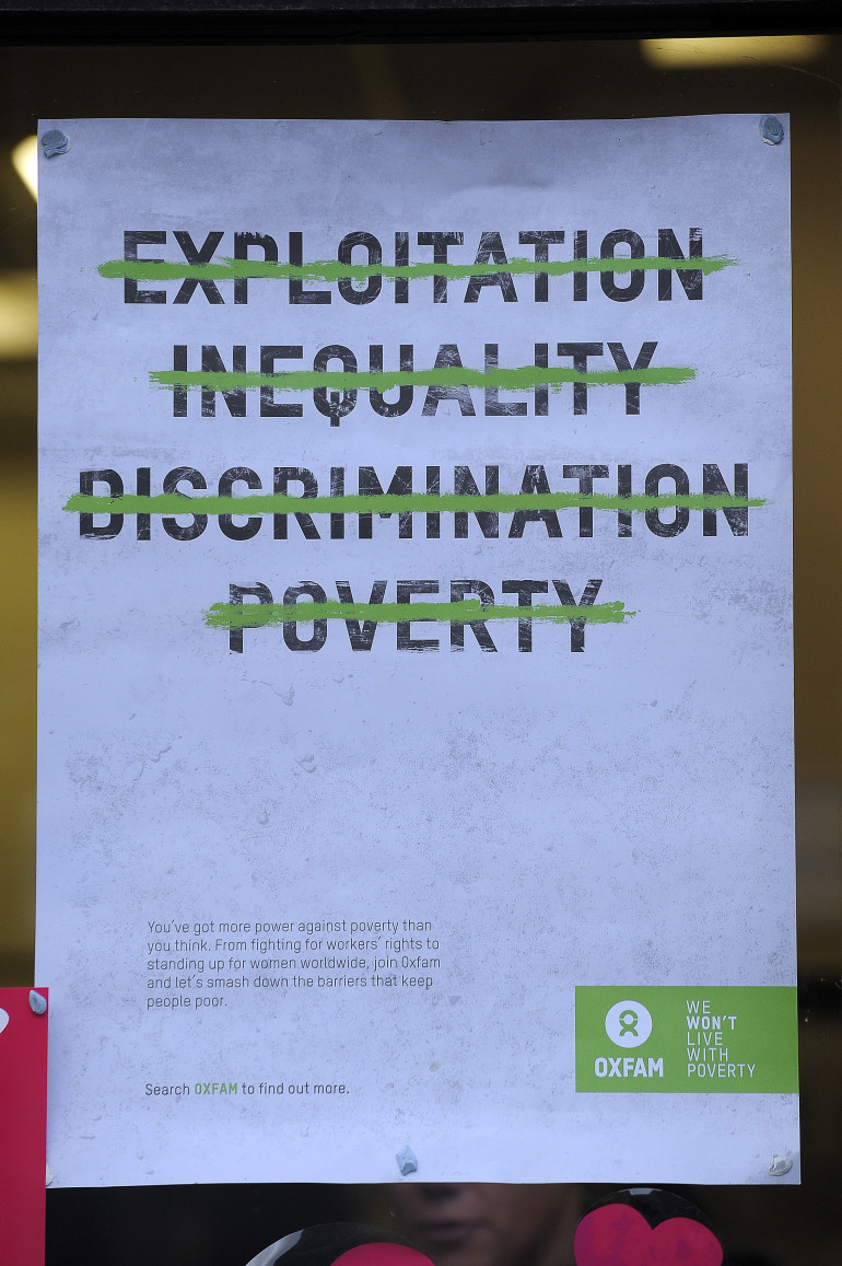 Une ffiche d'Oxfam qui se positionne contre les inégalités te l'exploitation