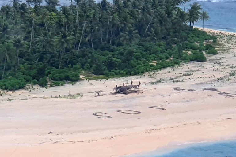 Trois marins de Micronésie qui avaient fait naufrage sur une minuscule île du Pacifique Ouest ont pu être secourus après que des avions australien et américain ont repéré le "SOS" géant qu'ils avaient dessiné sur la plage.