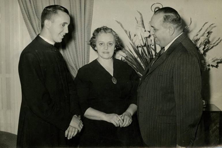 Photo diffusée de la famille de Bergoglio de l'Argentin avec Jorge Bergoglio, futur pape François, sa mère Maria Regina Sivori et de son père Mario Jose Bergoglio, photographiés en 1958 à Buenos Aires.
