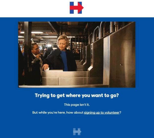 La page d'erreur du site internet de la campagne d'Hillary Clinton