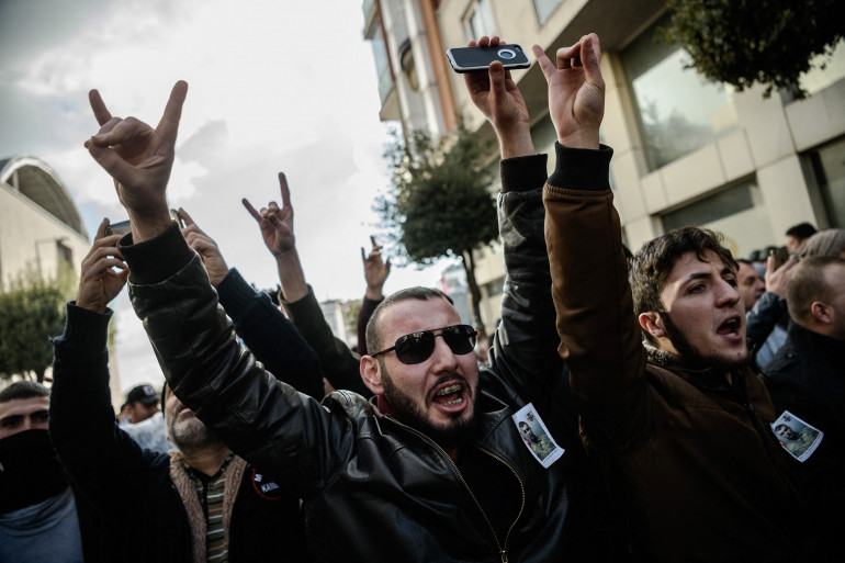 Des manifestants font le signe des "Loups gris" en 2016 à Istanbul