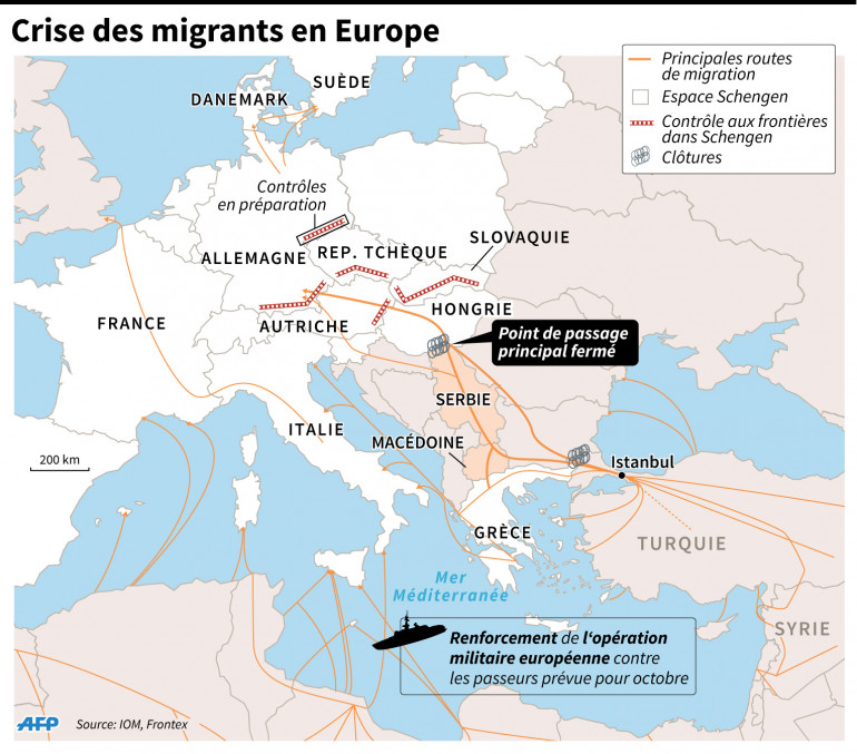 Lundi dernier, les ministres des États membres de l'Union européenne étaient réunis à Bruxelles pour trouver quel dispositif mettre en place pour venir en aide aux milliers de réfugiés qui fuient en Europe. L'espace Schengen, qui assure la libre circulation entre ses 26 États membres, prend du plomb dans l'aile. L'Allemagne, l'Autriche et la Slovaquie décident de rétablir le contrôle aux frontières. De son côté la Hongrie termine la construction de son mur anti-migrants.