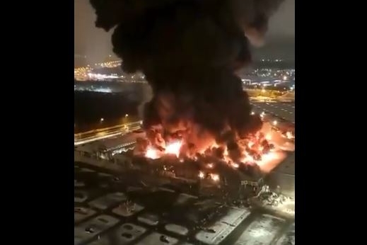 La banlieue moscovite touchée par les flammes. Dans la nuit du jeudi 8 au vendredi 9 décembre, un violent incendie a démarré dans un centre commercial situé à Khimki, au nord de la capitale russe. Le ministre russe des Situations d’urgence, Aleksandr Tchoupriyan, a décrit sur Telegram "un incendie d'une superficie de 7.000 m2". Sur Instagram, le ministère a décrit la difficulté des pompiers à travailler sur place : "En raison de l'effondrement du toit, le feu s'est répandu instantanément à une vaste zone".