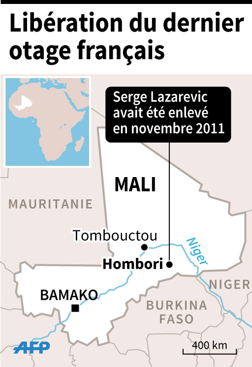 Le chef de l'Etat avait annoncé à la mi-journée la libération de Serge Lazarevic, enlevé le 24 novembre 2011 à Hombori au Mali, sans mentionner le versement d'une éventuelle rançon. L'Elysée a, dans la foulée, indiqué qu'il était "en relativement bonne santé, en dépit des conditions très éprouvantes de sa longue captivité".