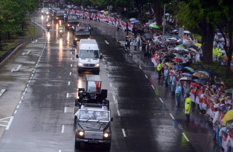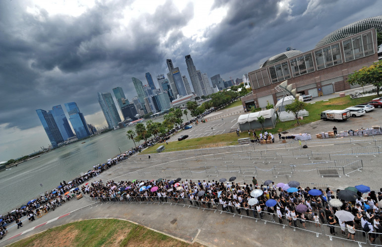 Des familles entières se sont massées sur le parcours emprunté par le cortège funèbre à l'occasion de grandioses funérailles publiques auxquelles étaient invités de nombreux chefs d'Etat étrangers. Des gens étaient en pleurs, d'autres scandaient le nom de l'ancien Premier ministre, d'autres encore lançaient des fleurs au passage du convoi. L'homme qui a régné d'une main de fer sur Singapour pendant 31 ans, est décédé lundi à 91 ans après des semaines d'hospitalisation pour une pneumonie aiguë.