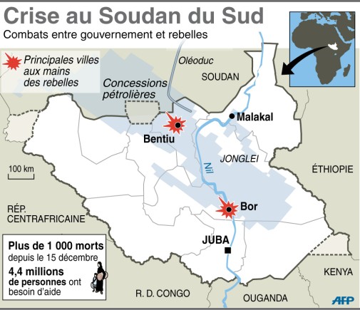 Depuis le 15 décembre, le Soudan du sud est le théâtre d'affrontements